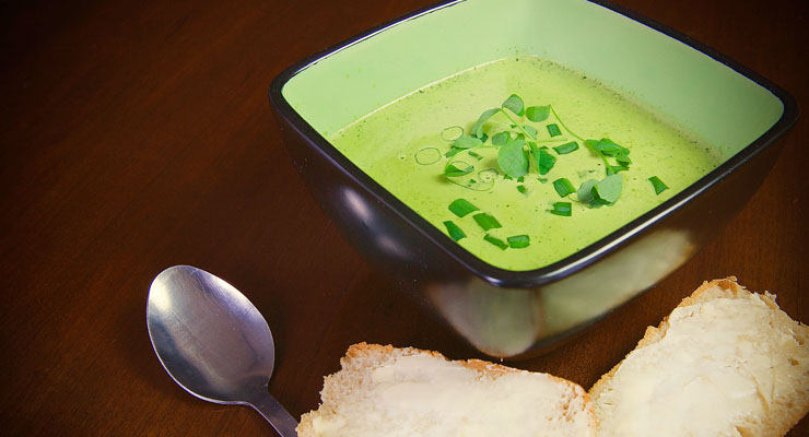 Pea shoot soup is packed with flavor and loaded with vitamins and nutrients. A favorite family dish on those cold winter nights. Vibrant green color and sweet flavor makes this an easy choice.